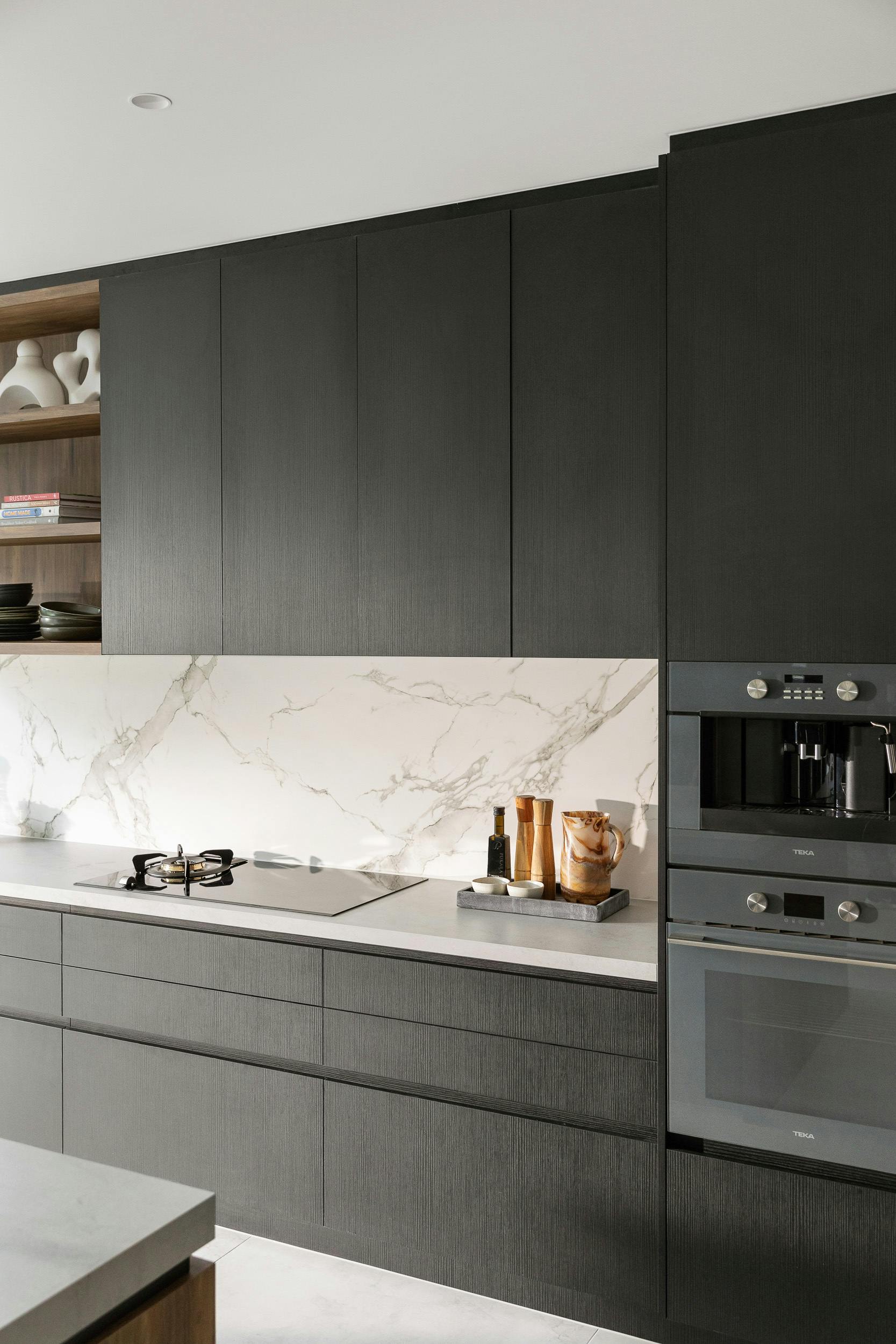 - Mix it up: Open shelving + closed cabinets = practical + stylish. “Some clients love displaying things, others want zero clutter. We often do both.”